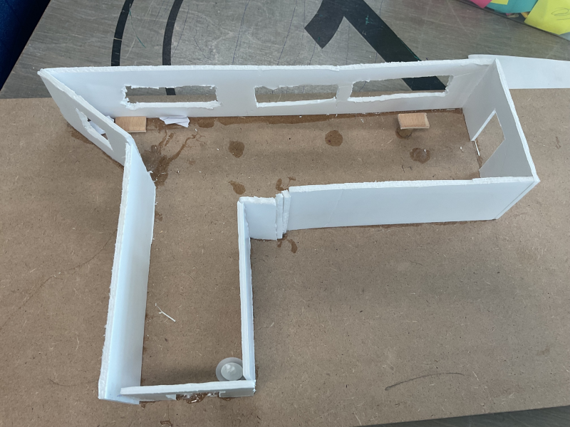 Dit was onze maqquette ik heb daar het meest van het hele groepje aan gewerkt wij hadden eigenlijk ook tafels enzv maar ik weet niet waar die zijn gebleven op de Foto.